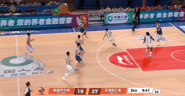 CBA常规赛,新疆对阵天津的比赛正在进行中。