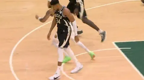 足球直播-疑似受伤?队友积极跑动执行战术,字母哥缓缓走向前场