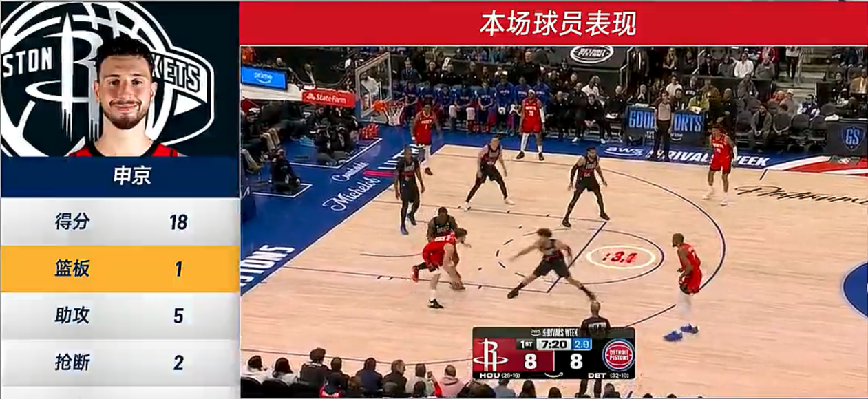 第三节因为卡佩拉打得太出色,申京只打了5分钟拿到1个篮板球,三节打完申京1个篮板,末节申京传球又低级失误,还剩3分12秒申京依旧是1个篮板球,申京又一个传球失误太拉跨了,申京扣篮被帽,申京单节第三个失误,25.2秒申京两罚一中,